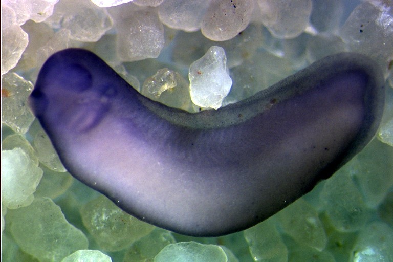 Larger Image scamp2 < secretory carrier membrane protein 2 [Predicted: Source is Human Entrez Gene]> gene expression in Xenopus laevis, via in situ hybridization, NF stage 29&30 embryo, lateral view, anterior left. Image copyrighted by: Pollet, Nicolas Copyright © CNRS UMR 8080, Nicolas Pollet Image published in: AXELDB Database, AxelDB (Image Pages)