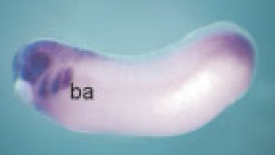 slc27a3 (solute carrier family 27 (fatty acid transporter), member 3) gene expression in Xenopus laevis embryo, assayed via in situ hybridization, NF stage 30, lateral view, anterior left, dorsal up.