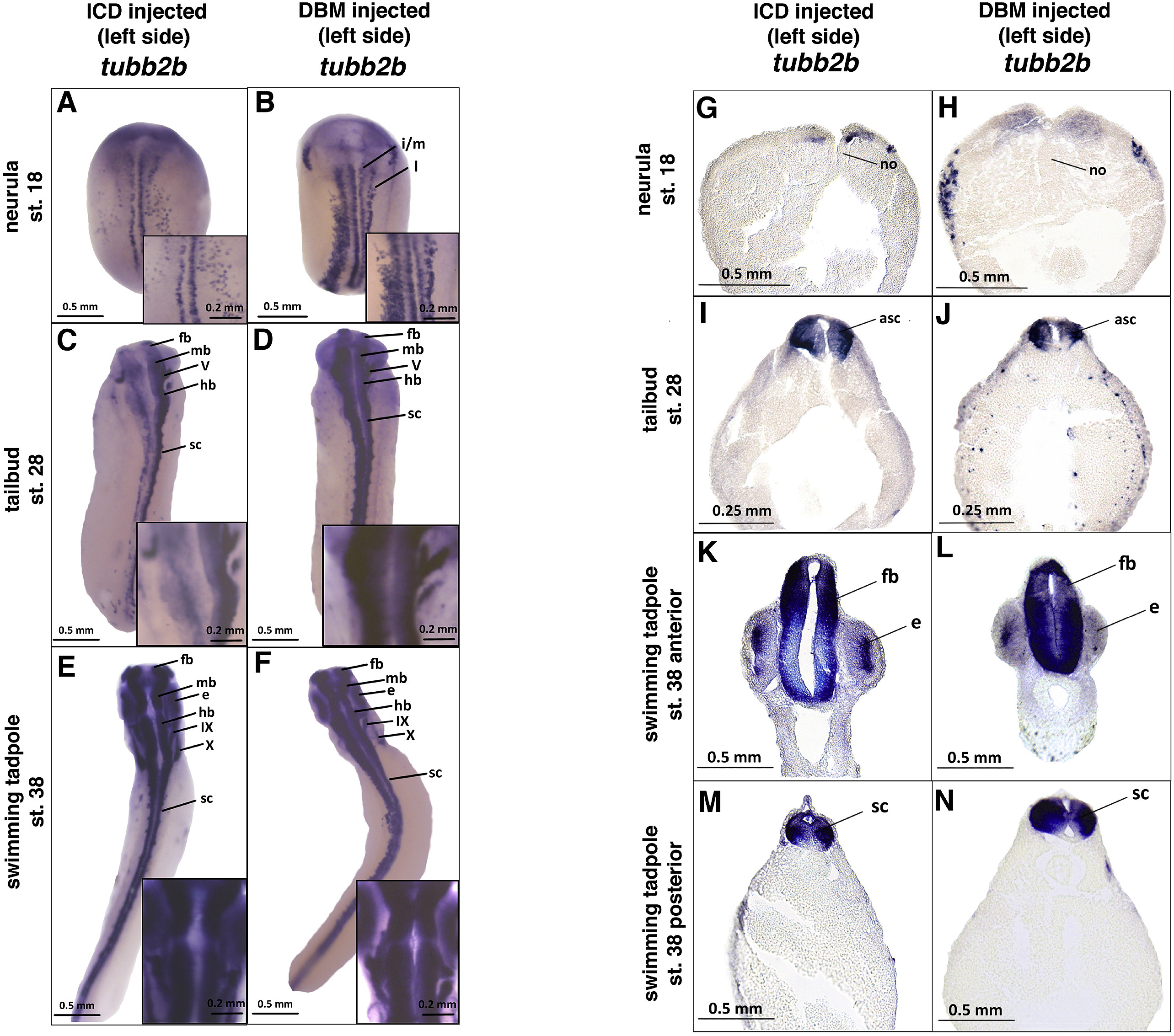 decreased amount tubb2b.L expression in neural plate