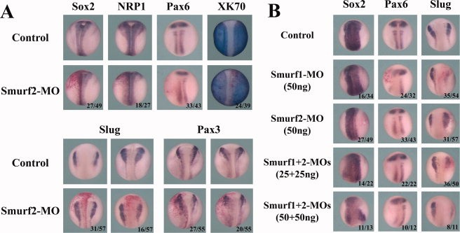Experiment + Assay: Xla Wt + smurf2 MO + neurula stage (in situ hybridization)