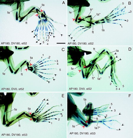| Anatomical Phenotypes: abnormal number of hindlimb digits, abnormal regenerating hindlimb morphology, duplicated foot, duplicated regenerating hindlimb, duplicated tarsus in regenerating hindlimb |