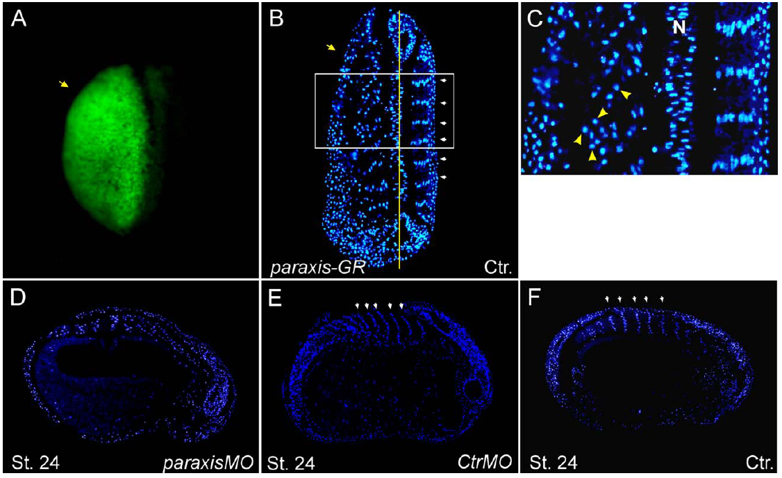 Anatomical Phenotypes: abnormally disorganized myotome, abnormally localised myotome, abnormally localised nucleus in myotome