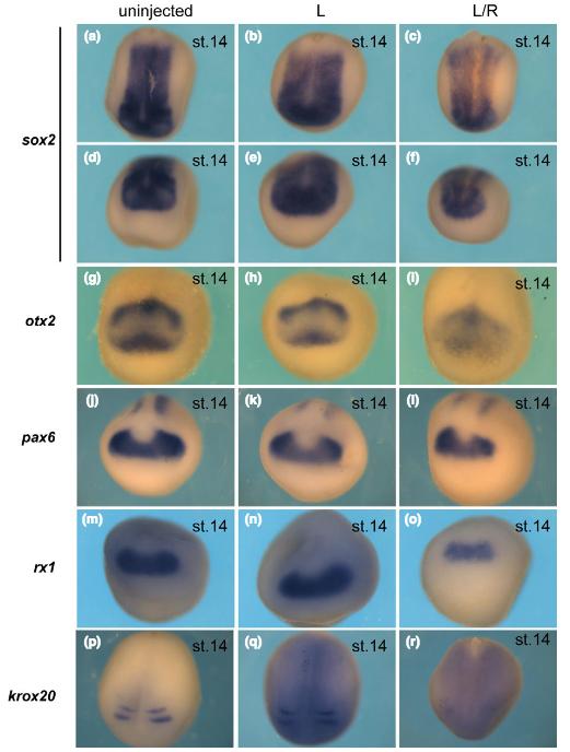 decreased amount egr2.L expression in presumptive rhombomere