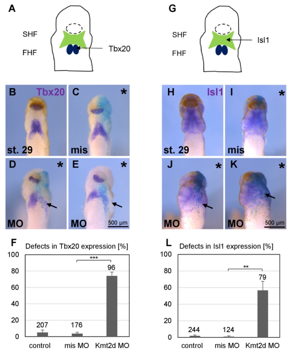 decreased amount tbx20.L expression in primary heart field