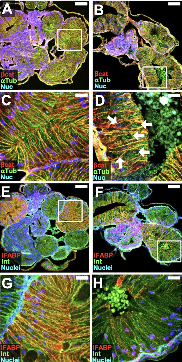 Anatomical Phenotypes: abnormal cell morphology, abnormal larval intestinal epithelium morphology