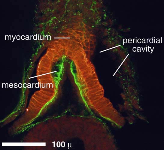 Atlas: tissues: heart: Stage 31 tropomyosin (red) and fibrillin (green)