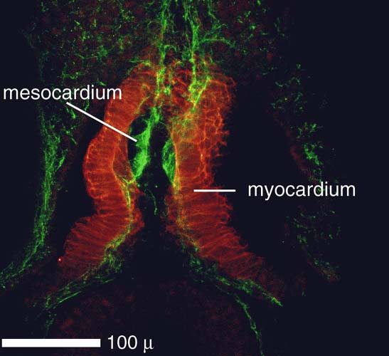 Atlas: tissues: heart: Stage 31 tropomyosin (red) and fibrillin (green)