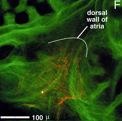 Atlas: tissues: heart: Stage 46: cardiac troponin T (red) and fibrillin (green)