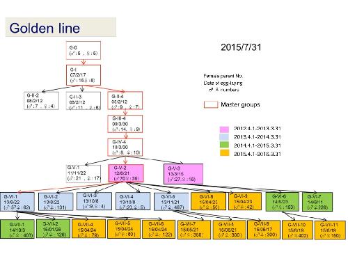 X. tropicalis Golden Line family tree/breeding history.