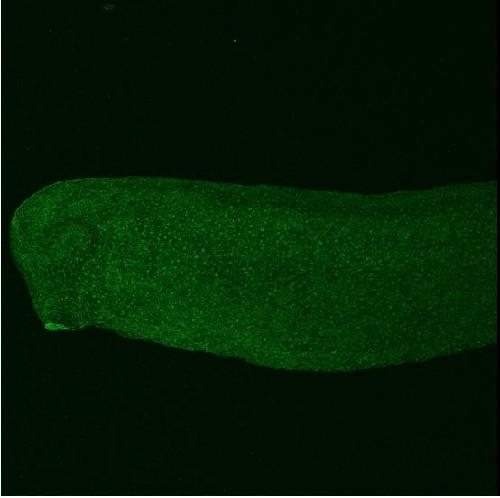 Kikume green fluorescence in Xenopus tadpole.