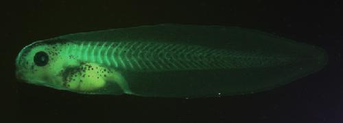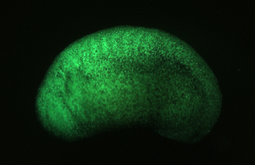 Robust expression of GFP in somites in X laevis Mintbody tg line: Xla.Tg(CMV-H3K9ac-EGFP)Ueno.