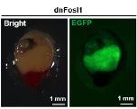 Fosl1 protein was mutated and truncated to generate 3 mutant polypeptides which then cloned into pcDNA3.1 plasmid (pcDNA-Fosl1-NT, pcDNA-Fosl1∆DB, and pcDNA-Fosl1∆LZ ). Full length of Fos, FosB, and Fosl2 were amplified from X. tropicalis cDNA library and cloned into pcDNA3 plasmid to construct pcDNA-Fos, pcDNA-FosB, and pcDNA-Fosl2 plasmids. Fosl1-NT with the maximum capacity to inhibit Fosl1-driven luciferase activity was used as the dnFosl1 due to its safety for other Fos proteins The DNA fragment of dnFosl1 was then fused with a T2A-EGFP coding sequence and cloned into a I-SceI transgenesis vector downstream of the 3 kb mlc2 promoter to construct the transgenesis plasmid pMlc2-dnFosl1-T2A-EGFP. The transgenesis plasmid and I-Sce1 enzyme were then injected into the animal pole of X. tropicalis embryos at one-cell stage to generate a transgenic line. Founder X. tropicalis were identified and propagated to establish this stable line. |