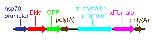 30 bp of promoter of the X. laevis hsp70 gene driving expression Dkk1GFP and 2.2 kb gamma crystallin promoter driving tdTomato. Dkk1 (labeled withGFP) specifically blocks Wnt/beta-catenin signaling and Dkk1GFP expression can be induced at a specific time-point by a heat-shock in this transgenic Xenopus. Thus, you can block Wnt/beta-catenin signaling temporally at desired time-point by a heat-shock. Transgenic X. laevis embryos were generated by a modified REMI technique using oocyte extract instead of egg extract. |