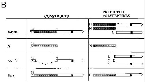 Description: Deletion construct of Xenopus laevis ihh (deltaN-C) removes most of N, leaving the signal sequence and several residues amino-terminal to the predicted cleavage site. Also known as deltaN-C and X-bhh-deltaN-C.