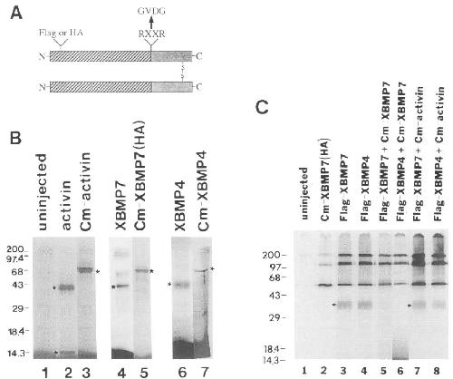 Description: Dominant negative form of bmp7.1 ligand with cleavage mutation blocking maturation. Conserved cleavage site RSKR (AGGTCAAAAAGA) was mutated to GVDG (GGCGTCGACGGA or GGCGTCGACGGT). Also known as CM-bmp7 and CM-Xbmp7.